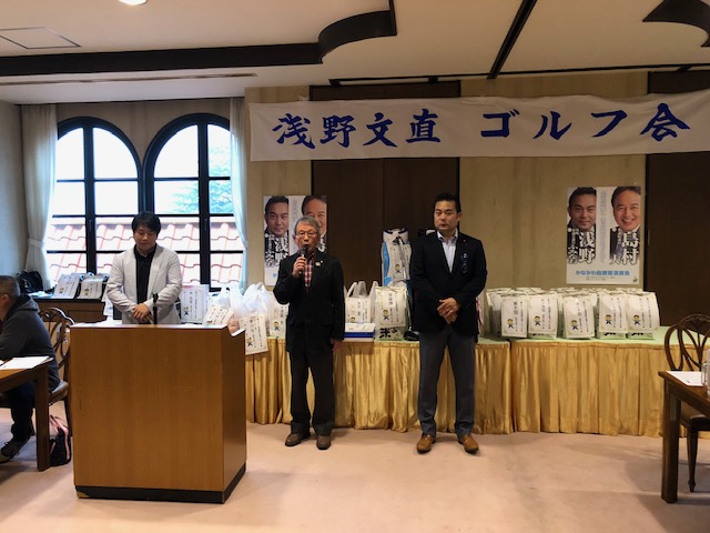 第31回浅野文直ゴルフコンペにて。 2018/11/08 火曜日の事ですが、31回目となるゴルフ大会を開催しました。 31回を数える事が出来た事を振り返ると、役員、参加者、献品頂ける方々など多くの方々に感謝です。 考えてみれば、31回という事は、私と1月の間、毎日一緒だったのと同じですから。 それにしても、今回もまたブービーメーカーの私は、本当に下手くそ過ぎる。 今回も参加者から色々なご意見、陳情を頂きました。 一つ一つ解決してまいります! iPhoneから送信 More from my site明日(9月4日)は、川崎市総合防災訓練が犬蔵で開催!しかし、私は濃厚接触者として明日まで自宅待機中。キッカケは漫画でもゲームでも良いから、深掘りを!宮前区を統一しました!位置ゲーとGPSの進化も一興。TikTokで浅野ふみなお【市議会議員】をチェック①オススメ!第15回 川崎国際環境技術展宮前区にはガラスリッツェンの匠がいます!動物も瓜二つ、マイスターや! 共有:クリックして Twitter で共有 (新しいウィンドウで開きます)Facebook で共有するにはクリックしてください (新しいウィンドウで開きます)